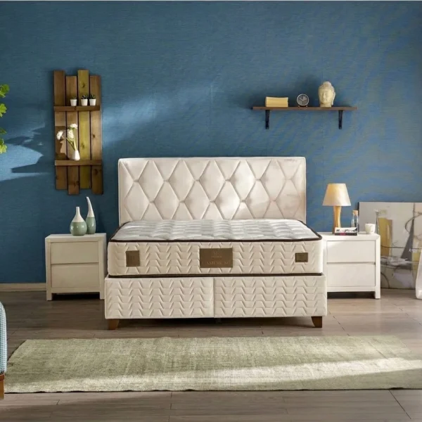 Prada ágykeret fejtámlával + matrac extra méret 180×220 Sb50 bézs