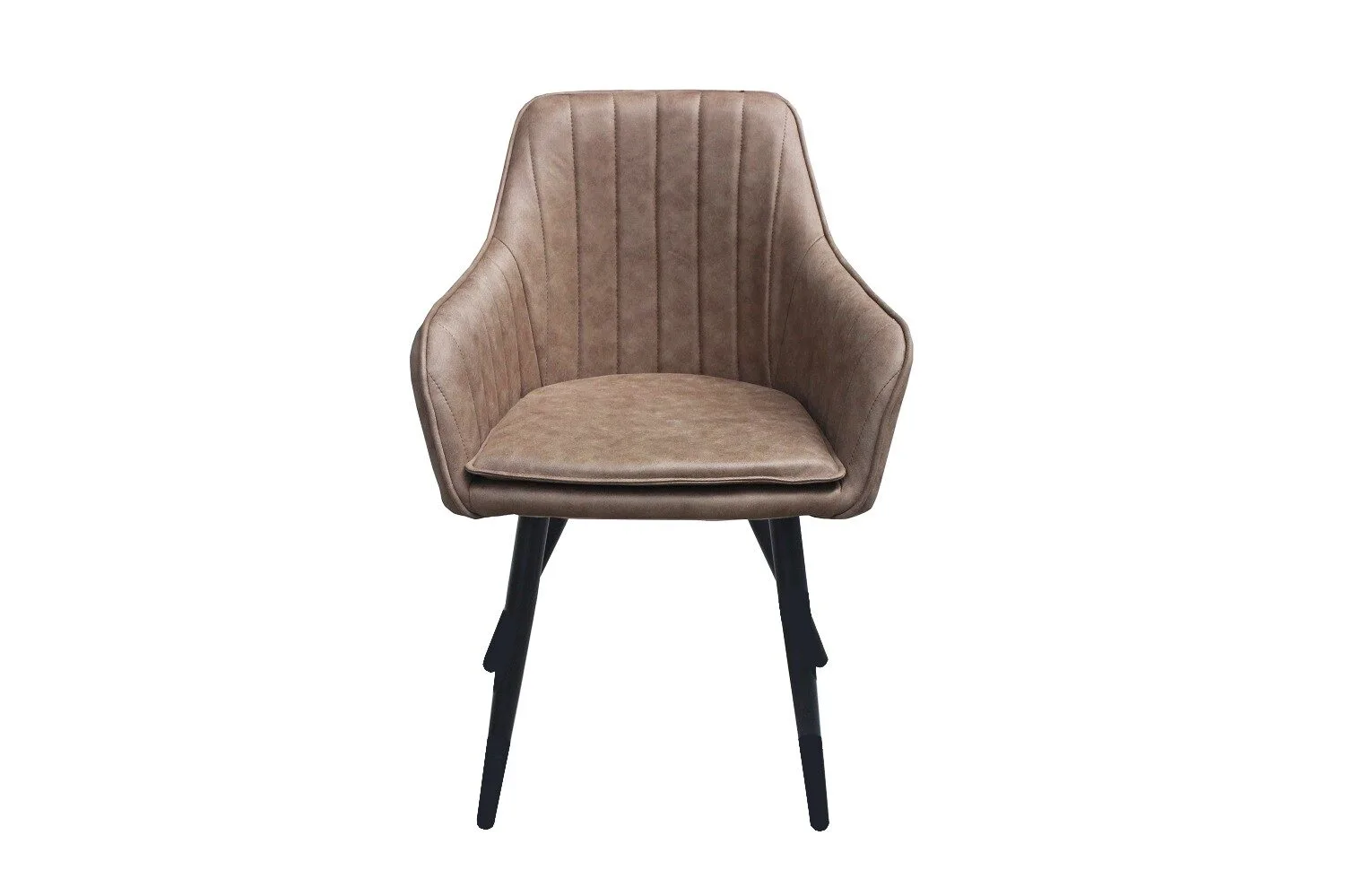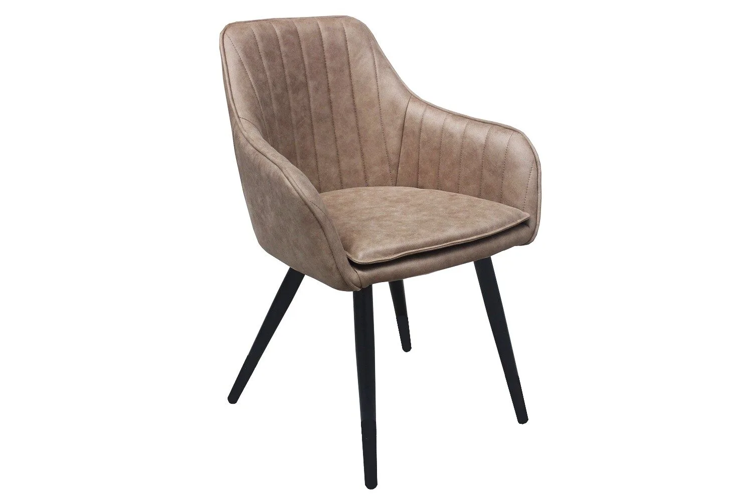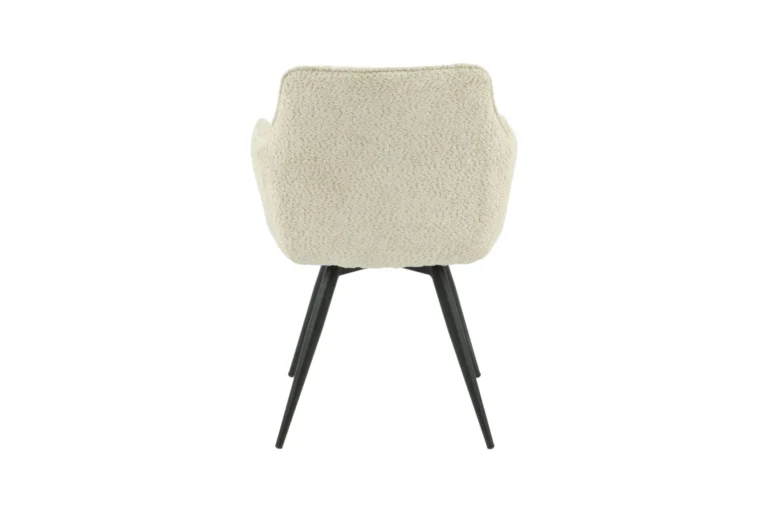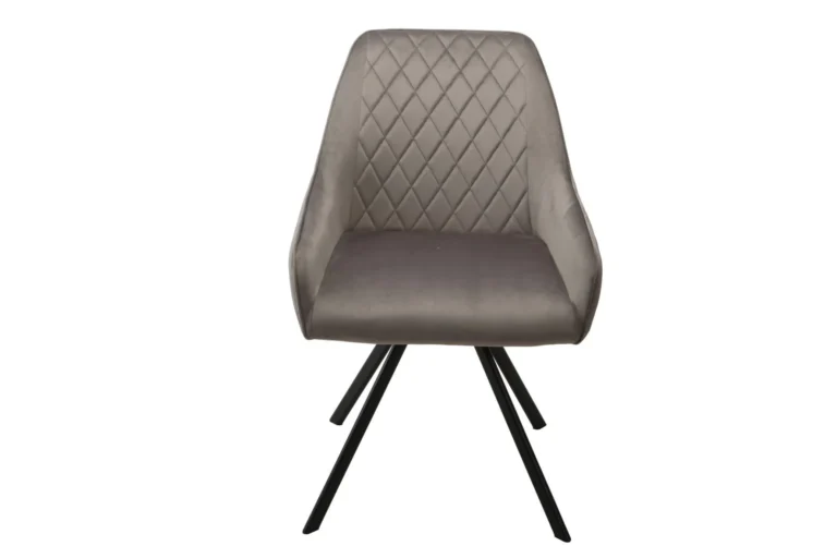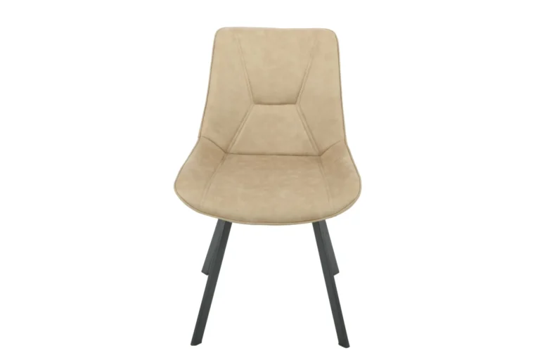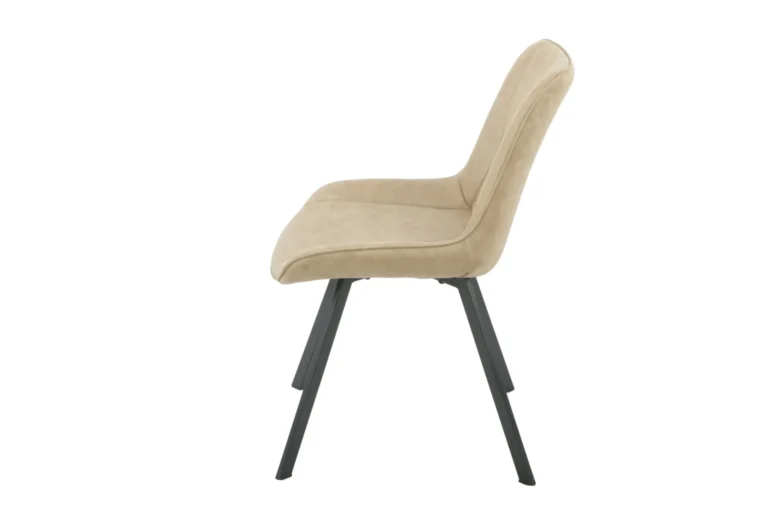 Ez a modern étkezőszék elegáns sötét bézs szövet kárpitozásával és matt fekete fém lábaival tökéletes választás minden stílusos enteriőrbe. Az antikolt hatású szövet karaktert ad a bútornak, miközben kényelmet kínál. Tedd különlegessé étkeződ ezzel az egyedi és időtálló dizájnnal!