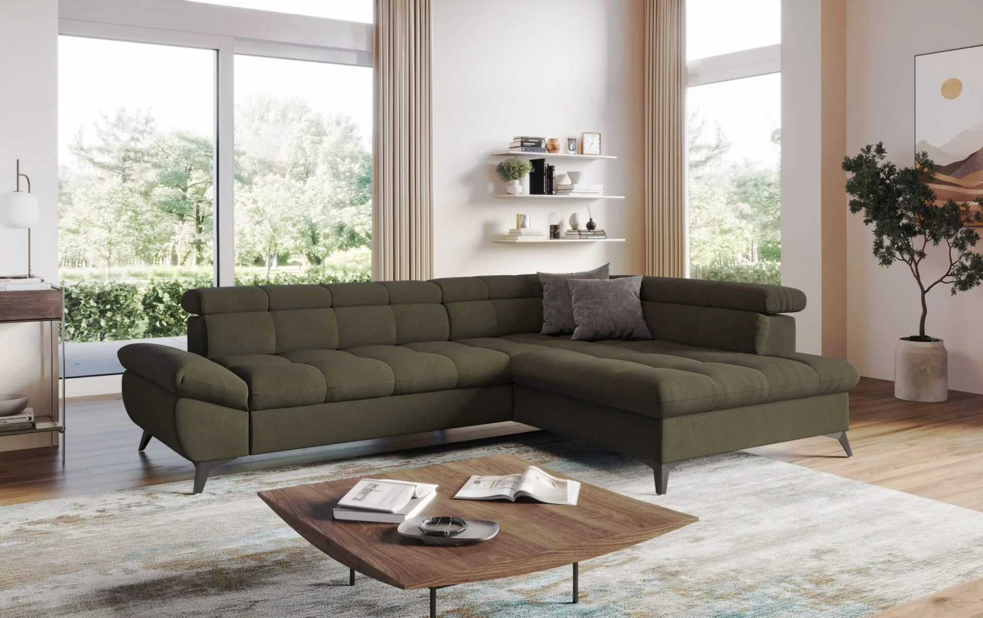 Fedezze fel az otthoni kényelem új dimenzióját APOLLÓ kanapénkkal! Rugós ülőfelülete maximális komfortot nyújt, míg az állítható fejtámlák a pihenés egyéni igényeihez igazodnak. Válasszon kedve szerint a számos szín és szövet közül, hogy a kanapé tökéletesen illeszkedjen otthonába. Jobbos és balos állásban is rendelhető, így könnyedén igazodik az adott térhez.