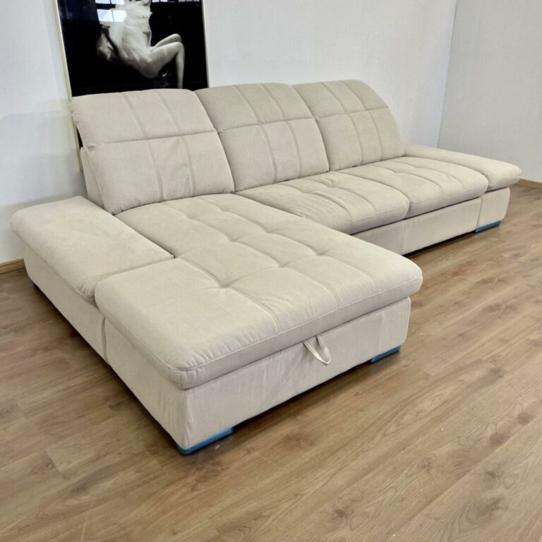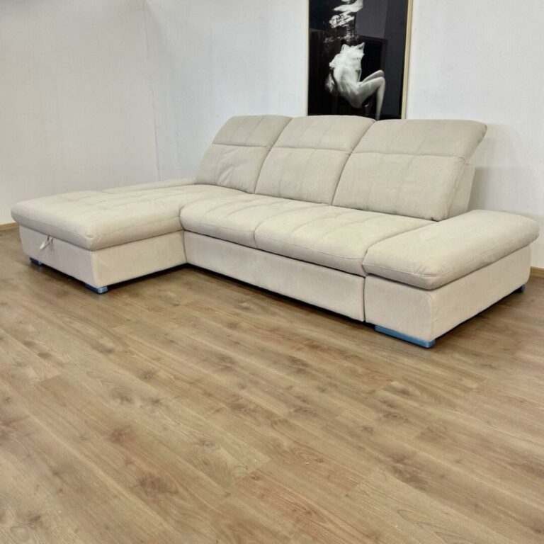 Az sarokkanapé további szép az állítható fejtámlák, az állítható kartámaszok és a krómozott lábak.