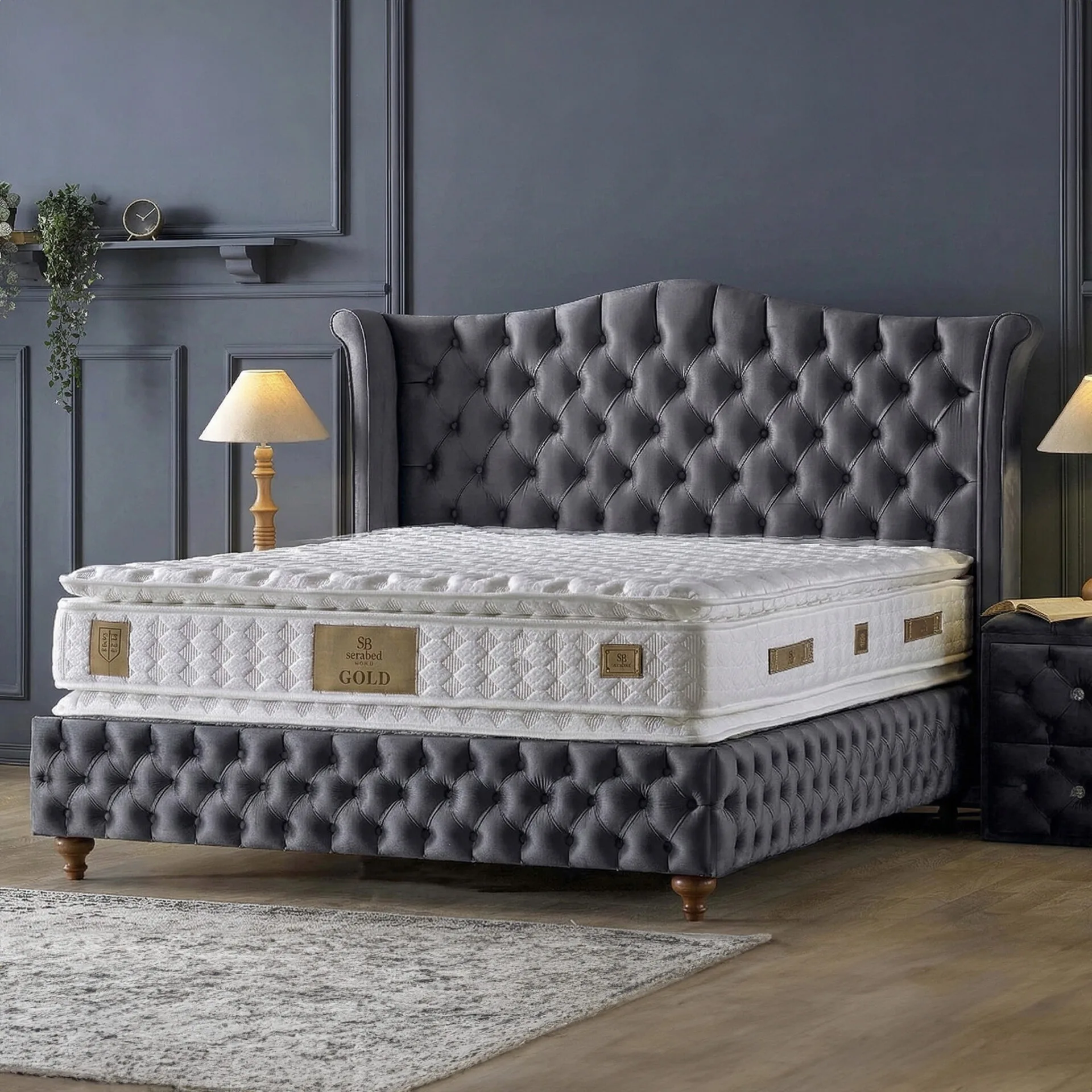 A GOLD ágykeret a klasszikus elegancia és a modern funkcionalitás tökéletes ötvözete. Kifinomult megjelenésével prémium hangulatot teremt a hálószobában, miközben masszív kialakítása hosszú távú stabilitást biztosít.