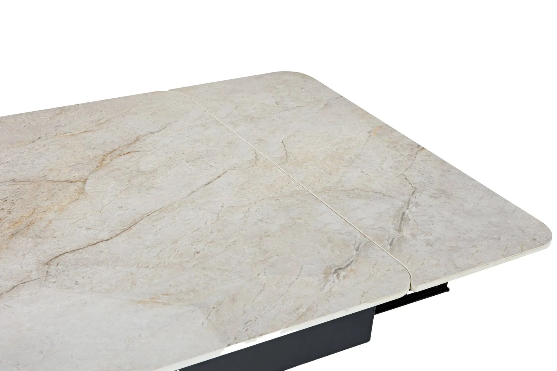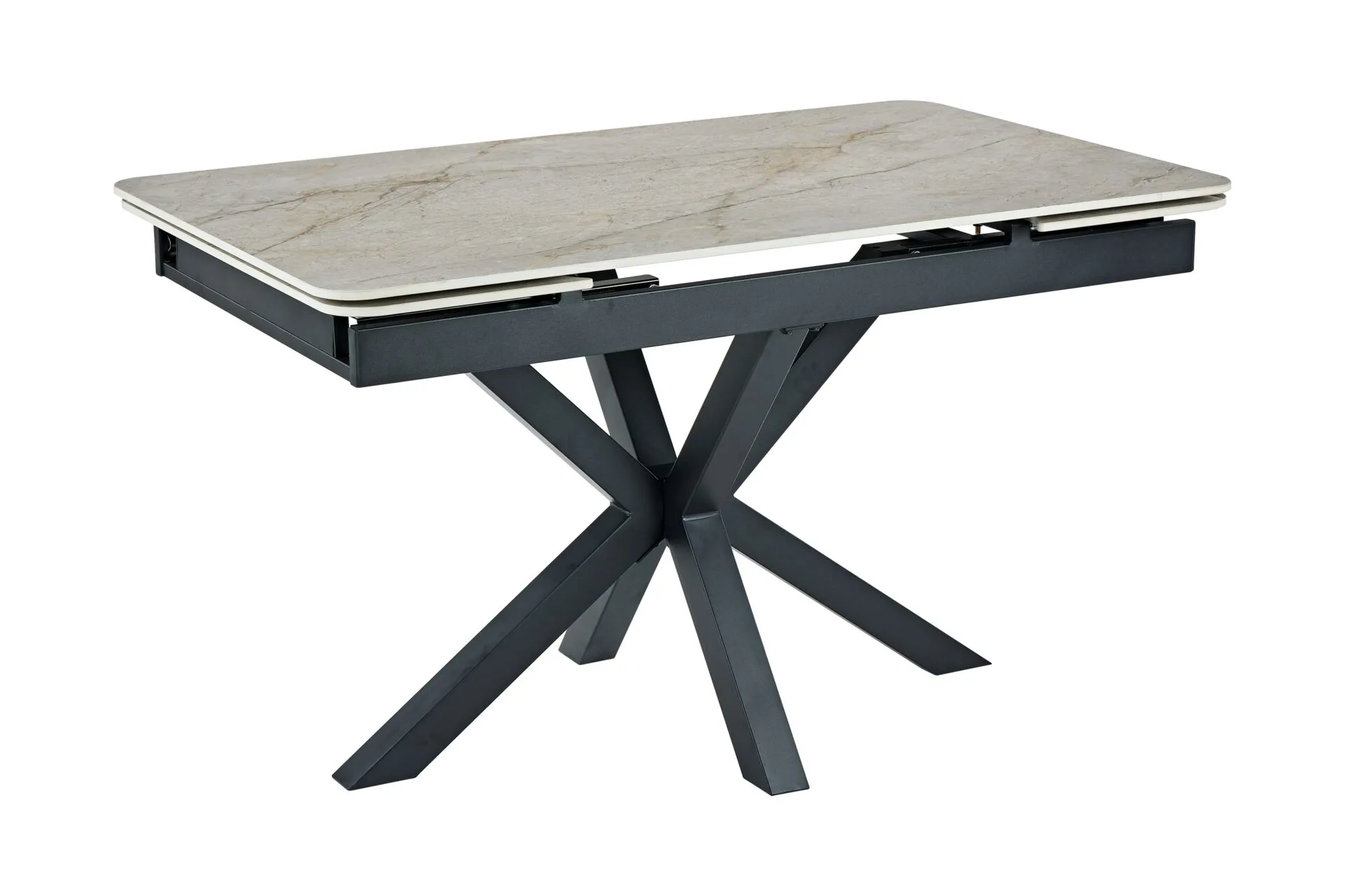Az asztal stabil és masszív alapját a porszórt fekete fém lábak adják, amelyek biztosítják a bővített állapotban is billegésmentes, megbízható használatot. A porszórt bevonat hosszú élettartamot garantál, ellenáll a kopásnak és a kisebb karcolásoknak.